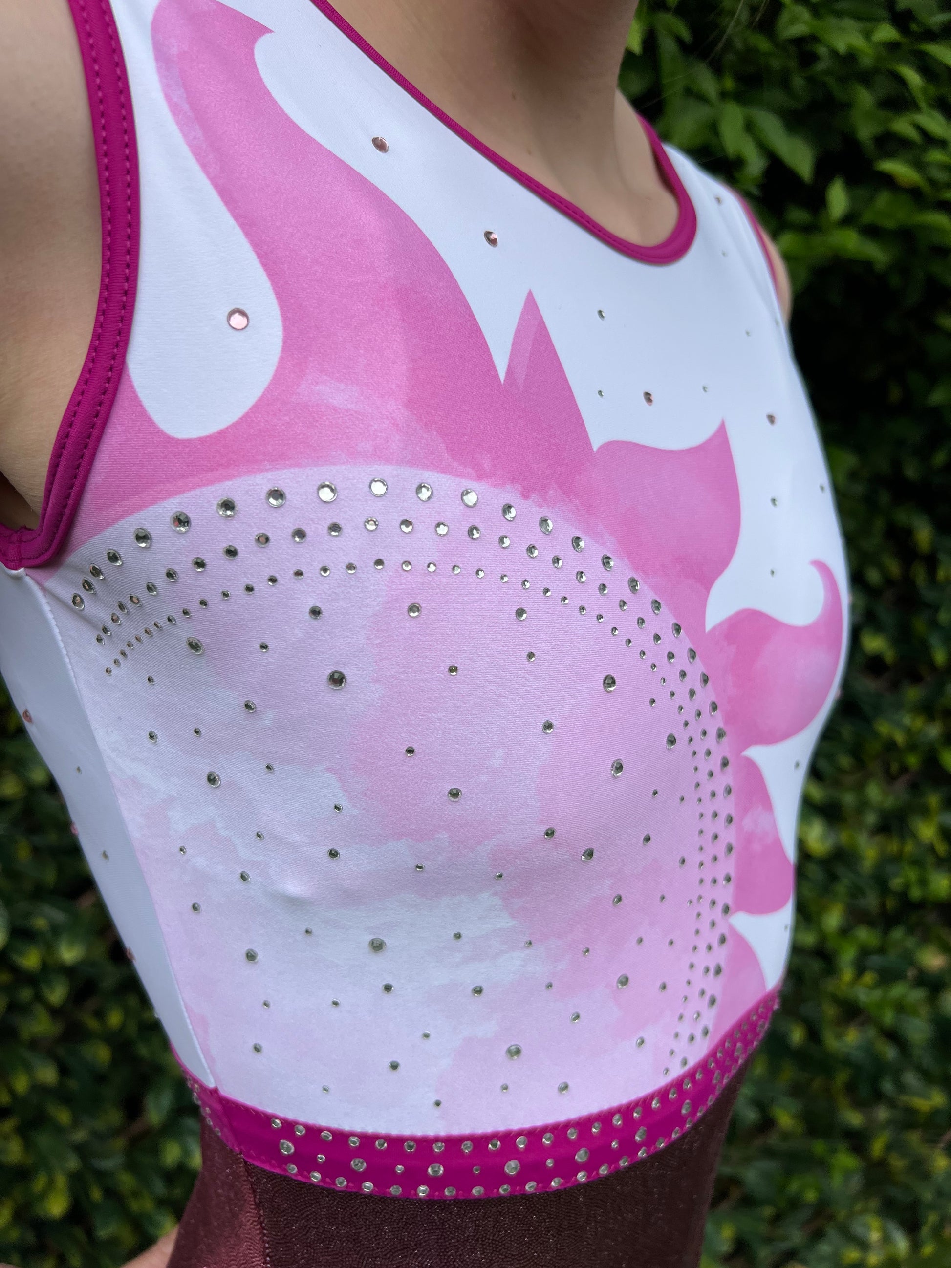 Featuring our NEW Burgundy Baby Pink mystique and dainty pink diamantes, this leotard is truly 'pretty in pink'.